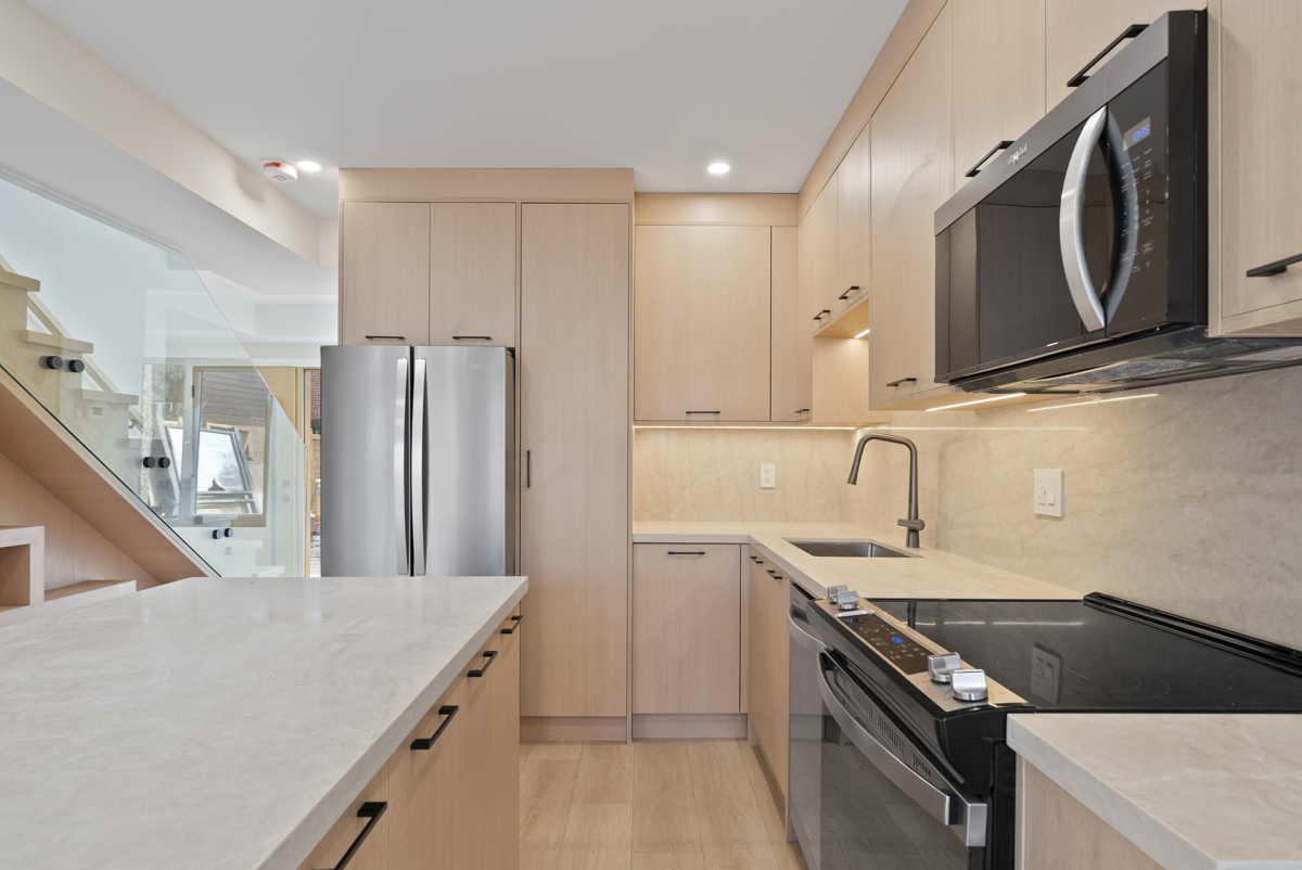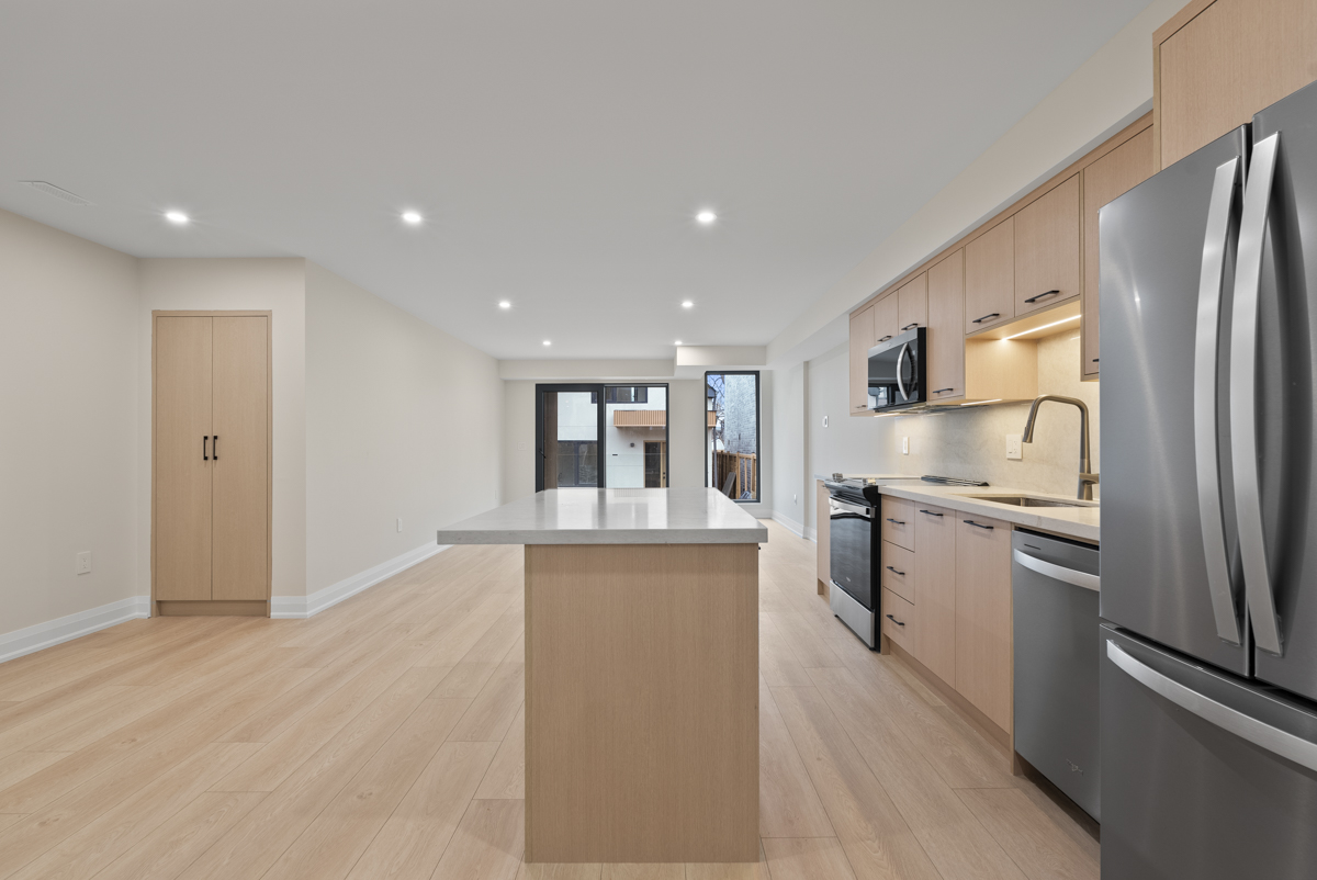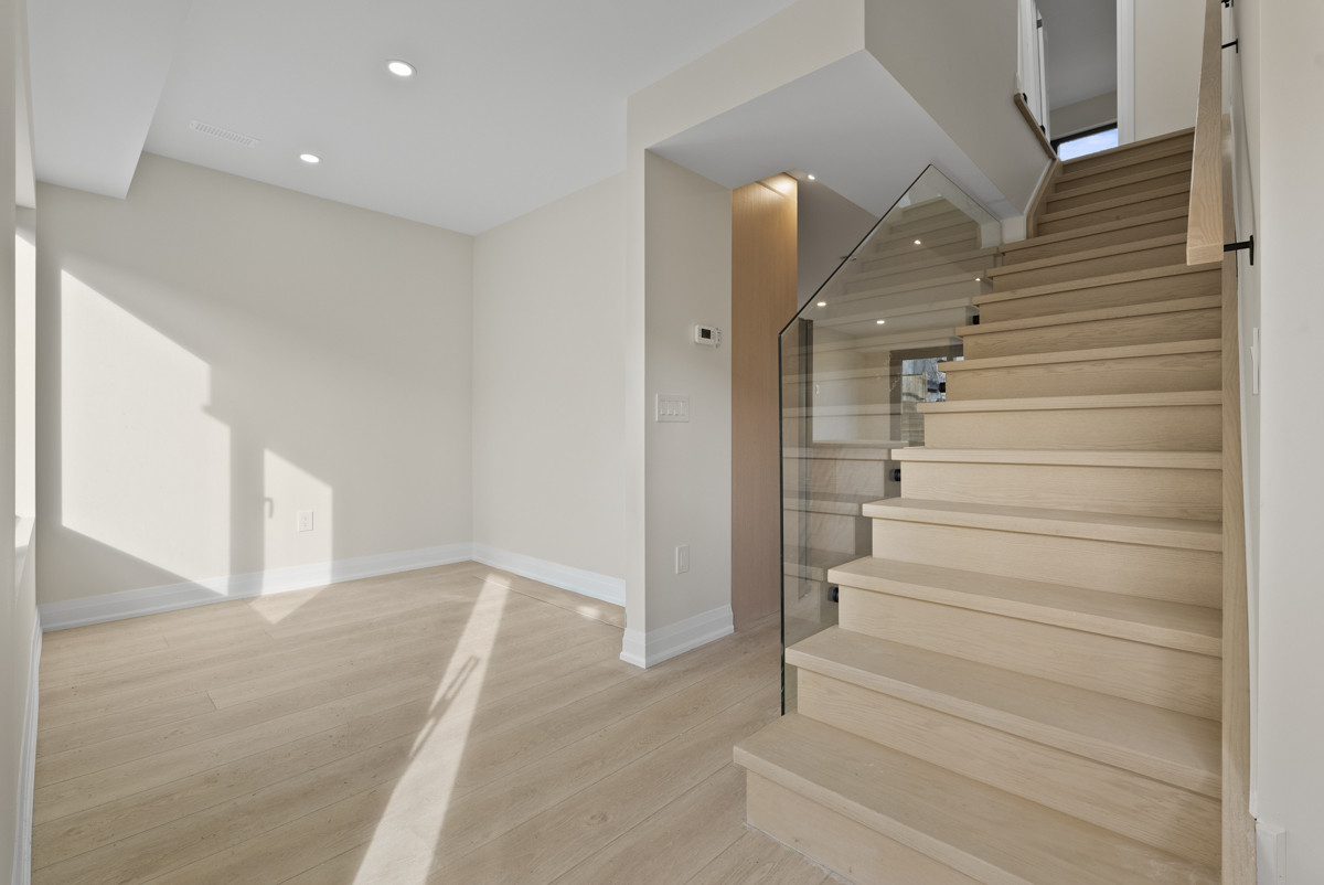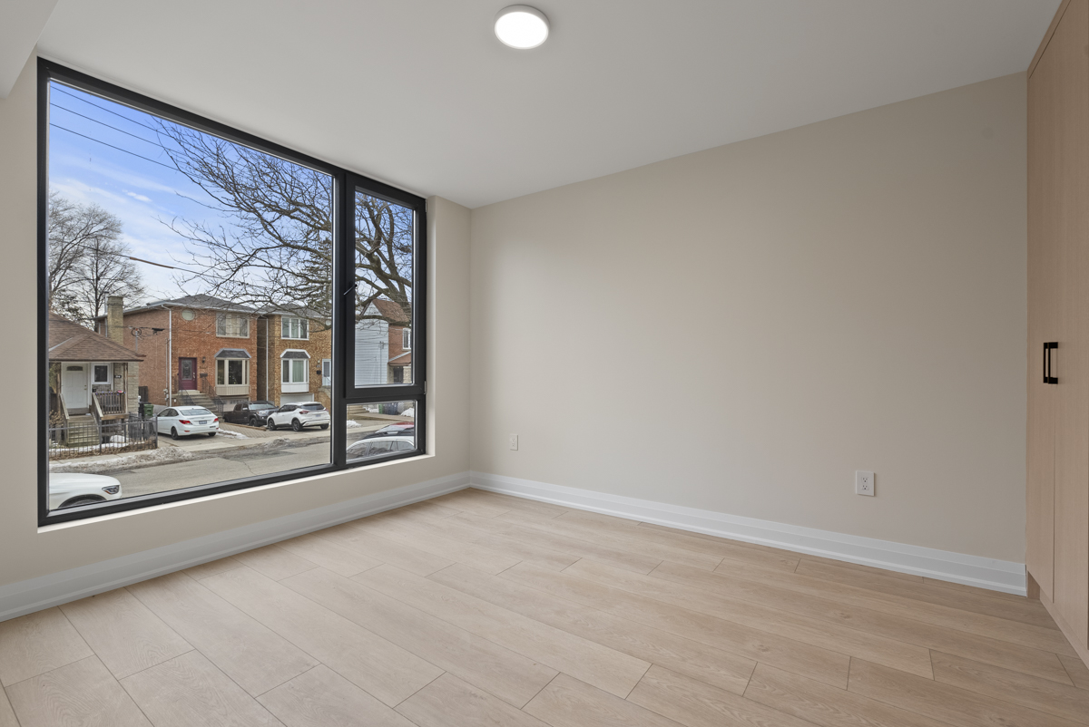 Aria Build was retained to design and build this custom multifamily development in East York, delivering five thoughtfully planned two-bedroom rental units, each with 1.5 washrooms. Every floor was designed as a self-contained two-bedroom suite, creating efficient and functional living spaces for modern urban living. The basement level was carefully raised to reduce the number of steps below grade, allowing for larger windows, increased natural light, a spacious rear patio door, and a comfortable sitting area that feels bright and welcoming.